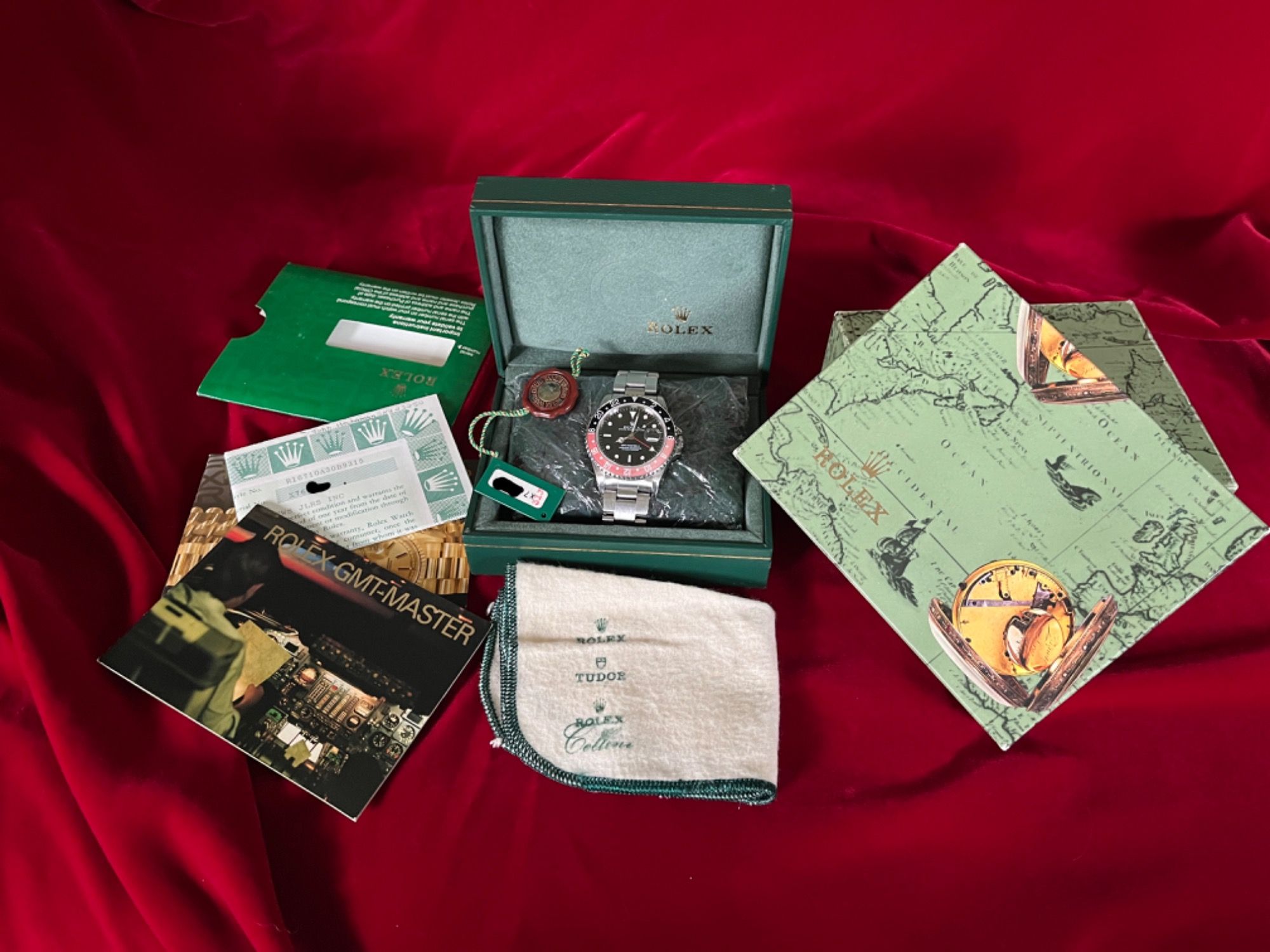 Men's Cal. 3185 GMT Master II "Coke." Includes box/papers. Guaranteed Authentic. 30 years of wear - may need to be serviced. Keeping time and all GMT/Date features function well. Small chip on crystal and bracelet stretch. Running well, but service is advised. $ - SOLD